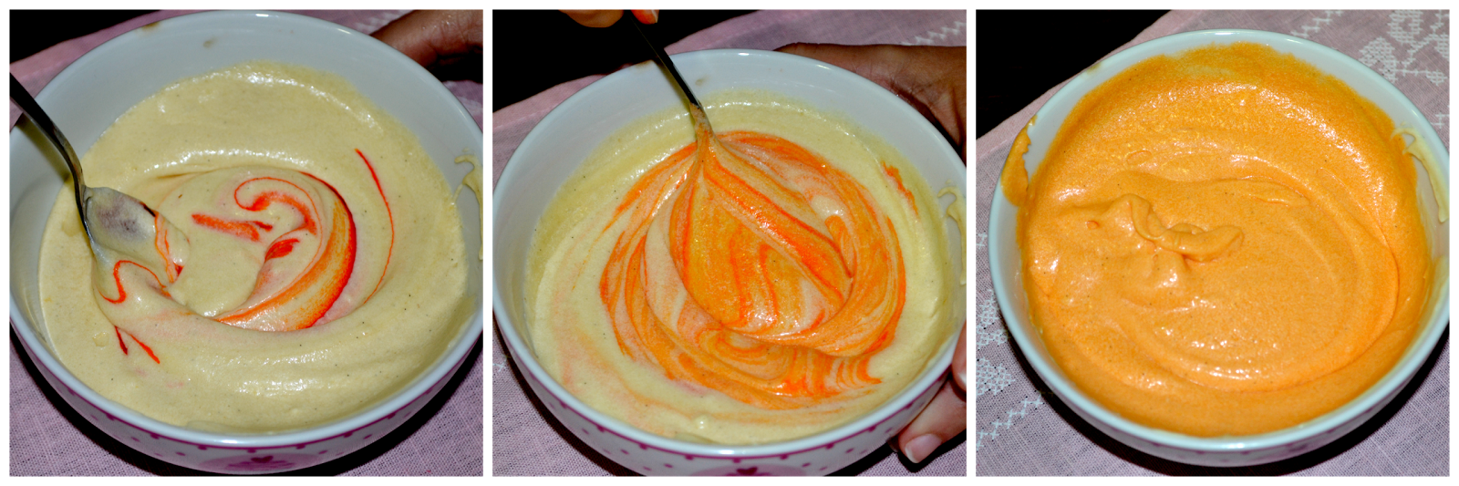 3- Luego de introducir el colorante alimenticio de tu elección, remueve con una cuchara la masa para mezclar de una manera uniforme el colorante.